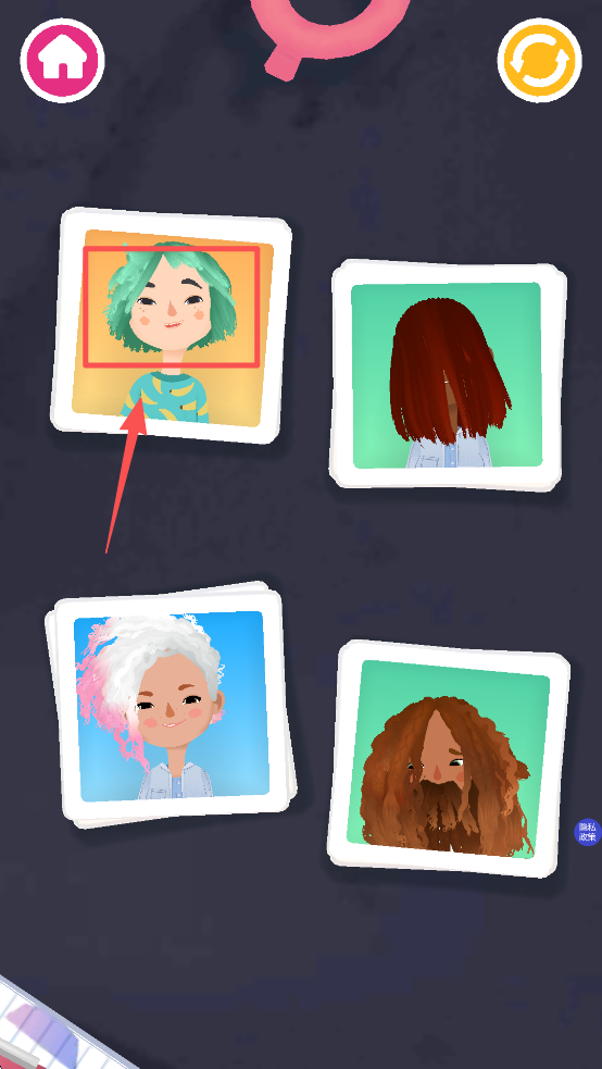 2、点击不同的发型卡片,选择你想要为顾客设计的新发型。