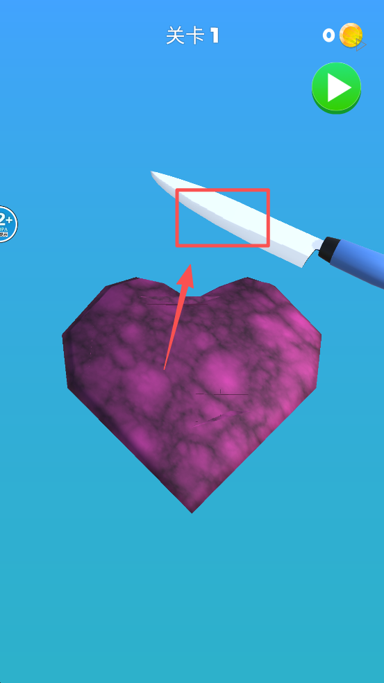 3、用手指滑动屏幕操控刀具,切割心形肥皂。