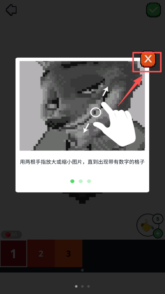 2、使用两根手指放大或缩小图片,直到出现带有数字的格子。