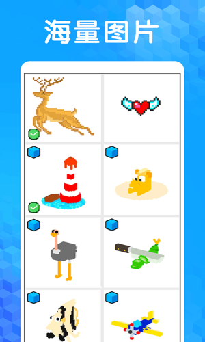 1、初始阶段,用户从图库中挑选一个心仪的像素模型,这些模型覆盖日常物品、自然景象等多种类别。