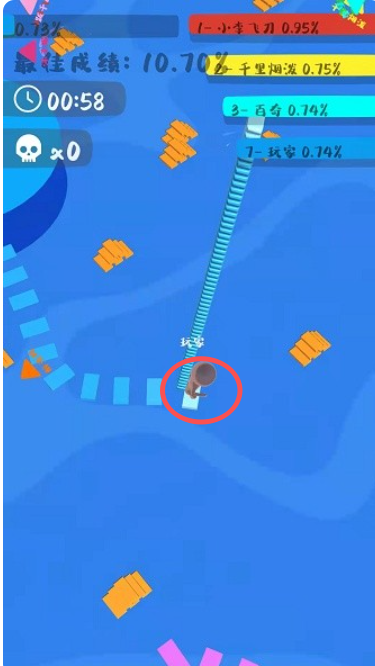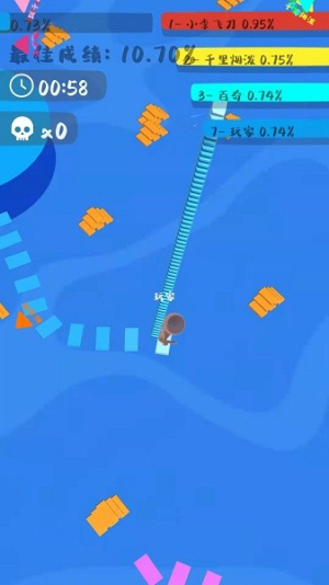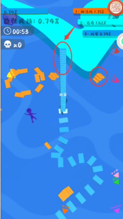 3、利用砖块在平台间隙构造临时桥梁,开辟最短路径,快速超越其他竞争者,抢占领先位置,智取胜利。