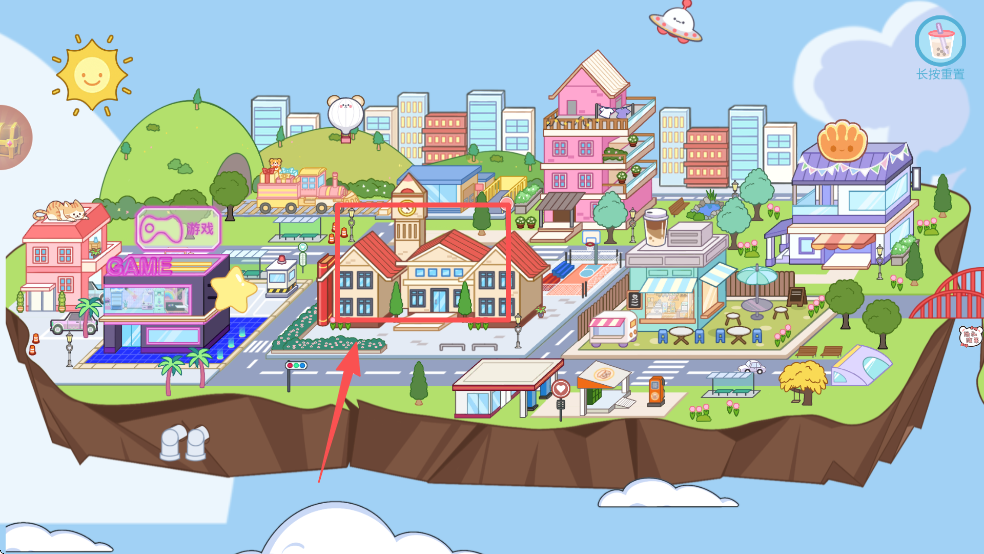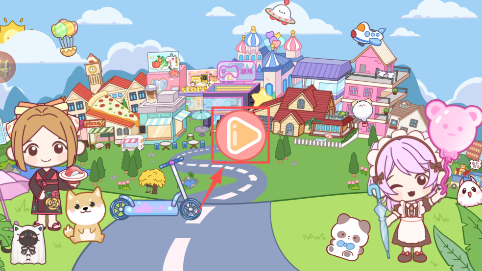 1、首先,点击播放按钮开始探索这个充满活力的虚拟小镇。