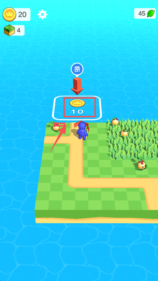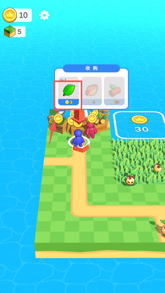 3、到收购点,将收集到的绿叶等资源进行售卖,换取金币。