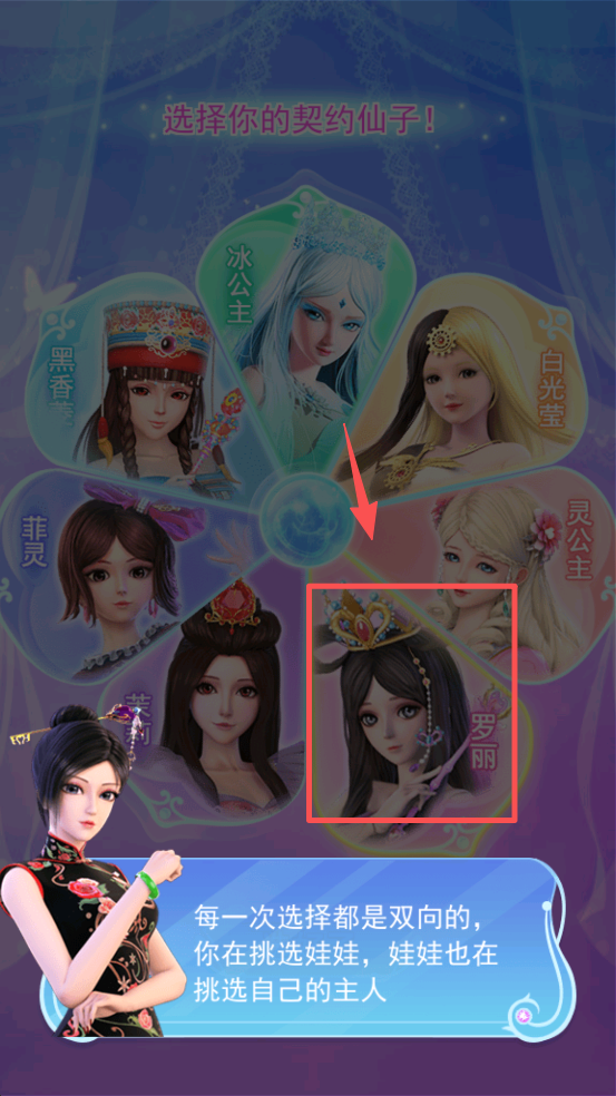 2、选择你的契约仙子,点击你最喜欢的角色,建立你们之间的联系。