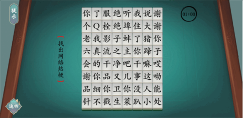 4、根据提示在方格中找到并标记出指定的汉字,完成关卡挑战。