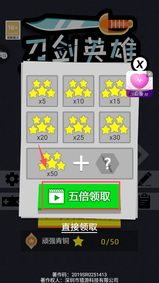 2、选择星星数量进行奖励兑换,点击“五倍领取”按钮,获取更多奖励。