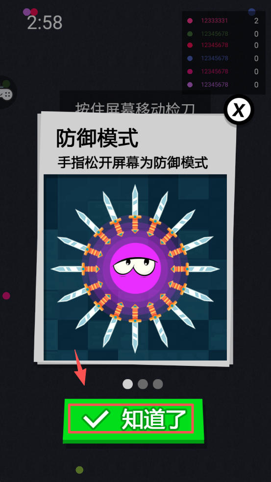 3、了解防御模式操作,点击“知道了”按钮,熟悉游戏操作方式。