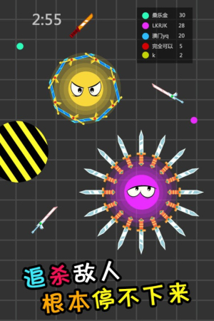 4、通过简单触控或虚拟摇杆操控刀剑移动,在竞技场中灵活穿梭。
