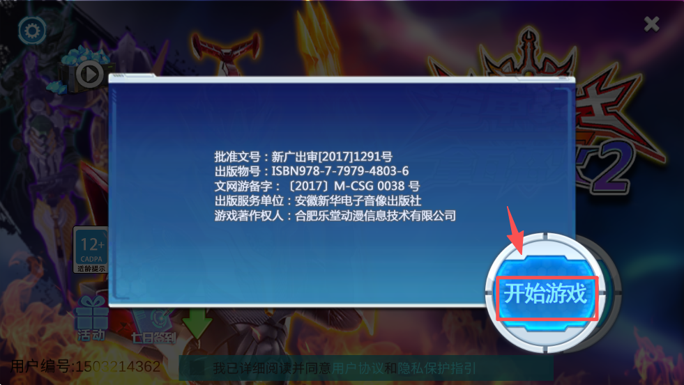 2、阅读游戏信息后点击“开始游戏”按钮,正式开启你的战斗。