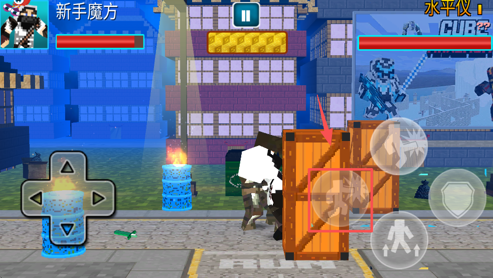 2、使用屏幕上的虚拟摇杆控制角色移动,避开障碍物并攻击敌人。