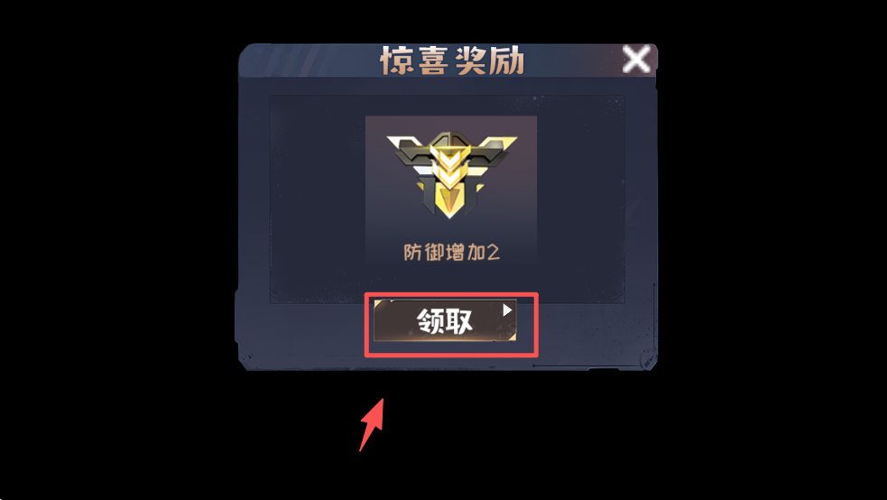 1、点击“领取”按钮,获取防御增加2的奖励,提升角色能力。