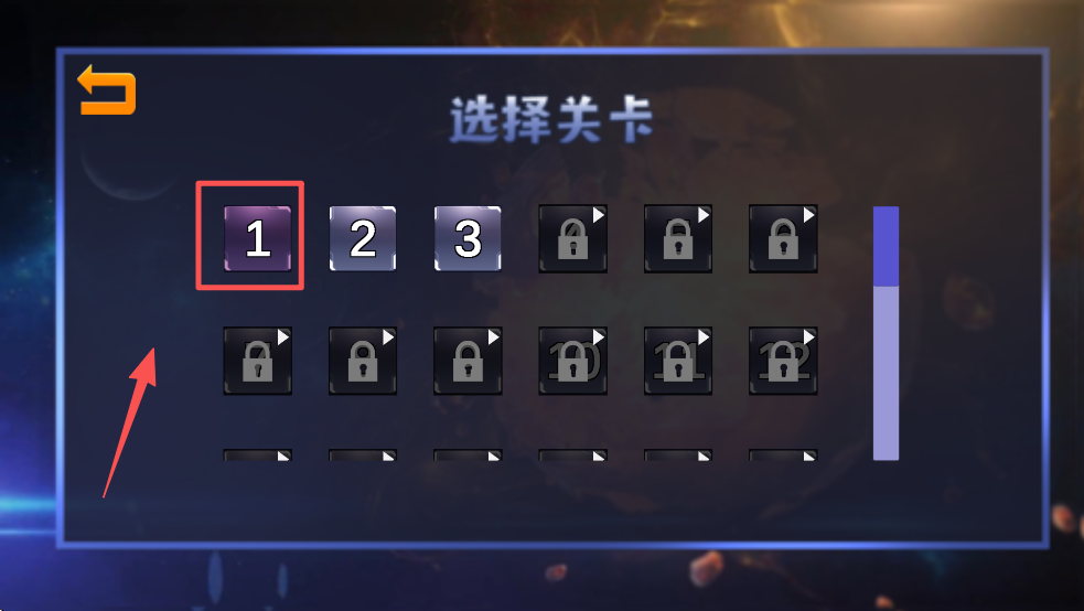 3、点击关卡1进入,选择你的第一个挑战关卡。