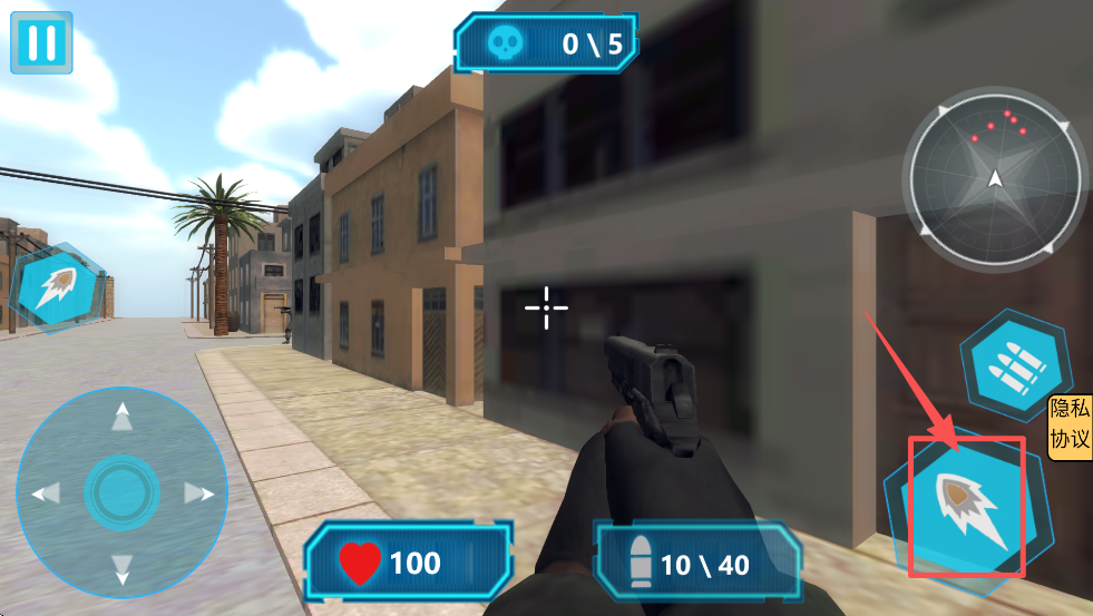 3、使用左下角的虚拟摇杆控制角色移动,探索环境,寻找敌人。