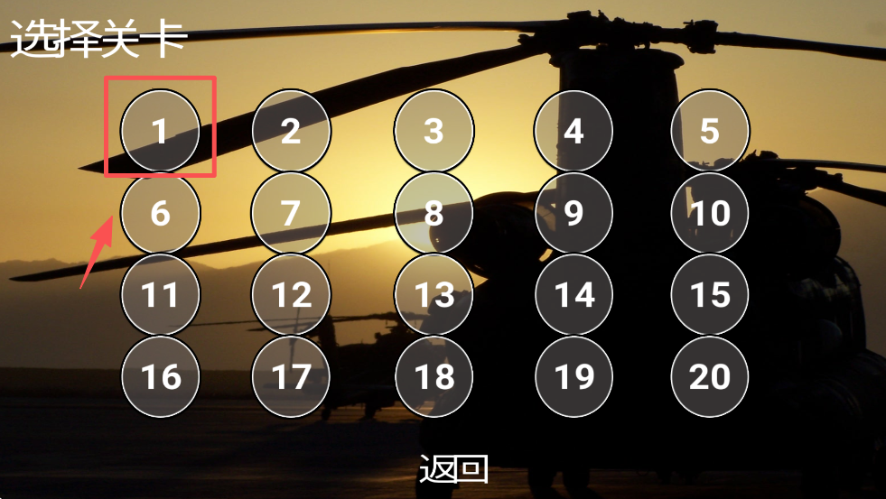2、选择关卡1开始游戏,点击选择并进入指定关卡。