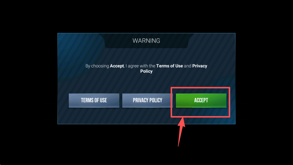 1、点击“ACCEPT”按钮,同意使用条款和隐私政策,以继续游戏。