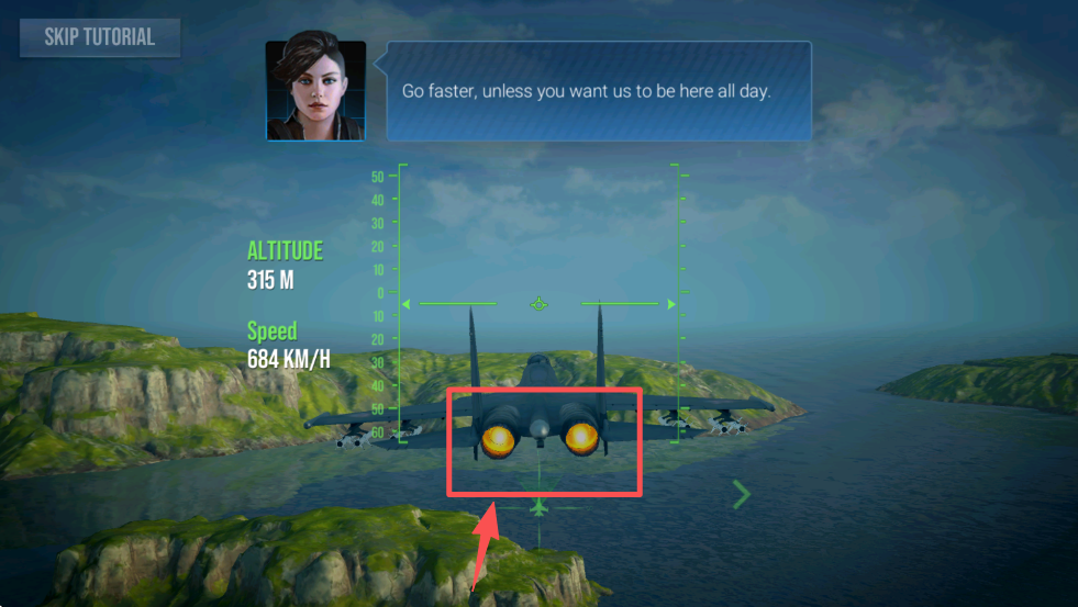 3、使用屏幕上的提示,控制飞机加速,学习如何操控飞机。