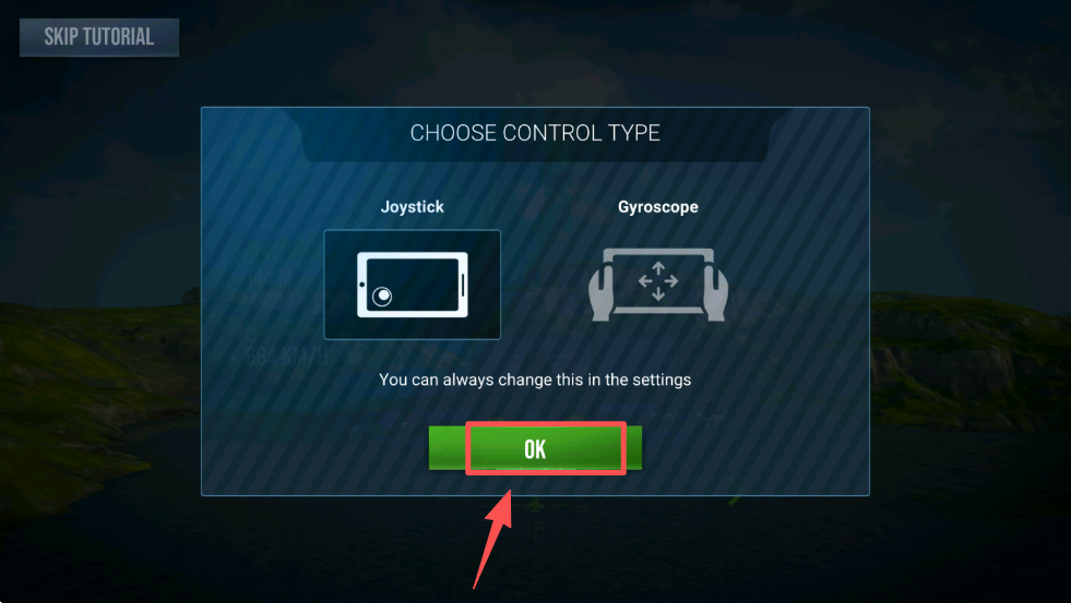 4、选择控制类型,点击“OK”确认选择,开始你的飞行模拟体验。