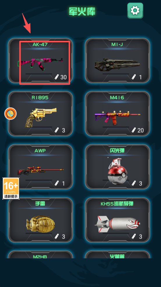 1、点击“AK-47”选择武器,查看详细信息,准备装备。