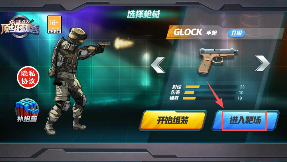 2、点击“滑动瞄准”进行射击训练,掌握基础操作技巧。