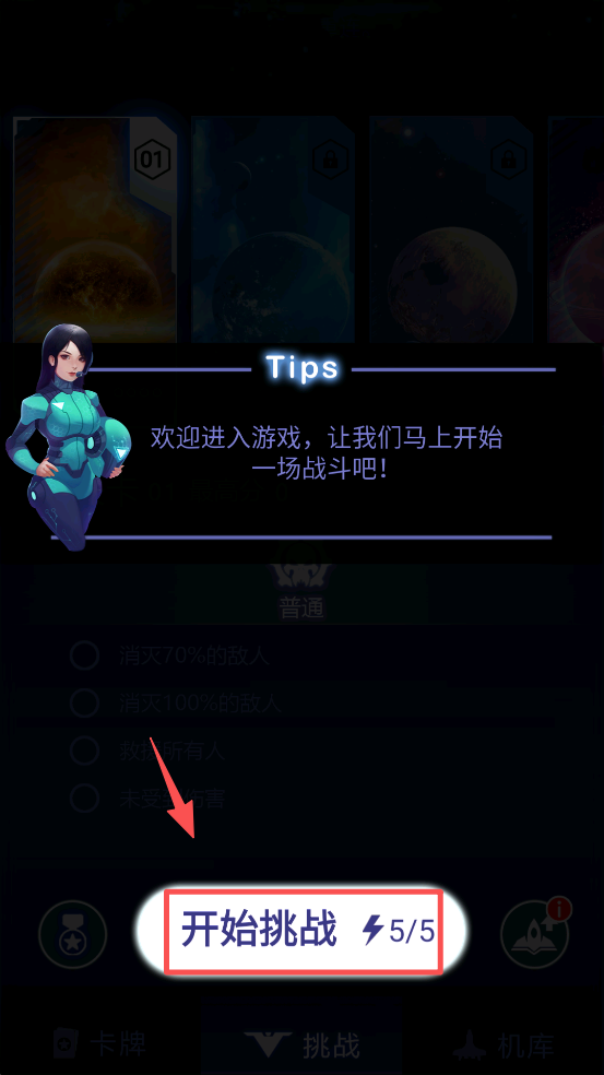 1、选择挑战难度后,点击“开始挑战”按钮进入游戏。