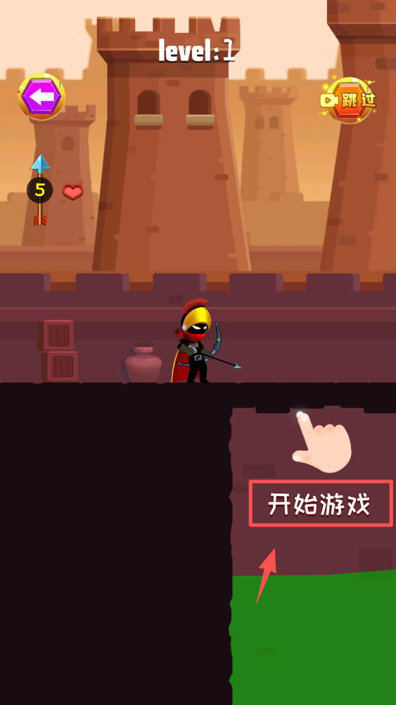 1、选择游戏,在主界面点击“一箭超人”图标,选择游戏开始。