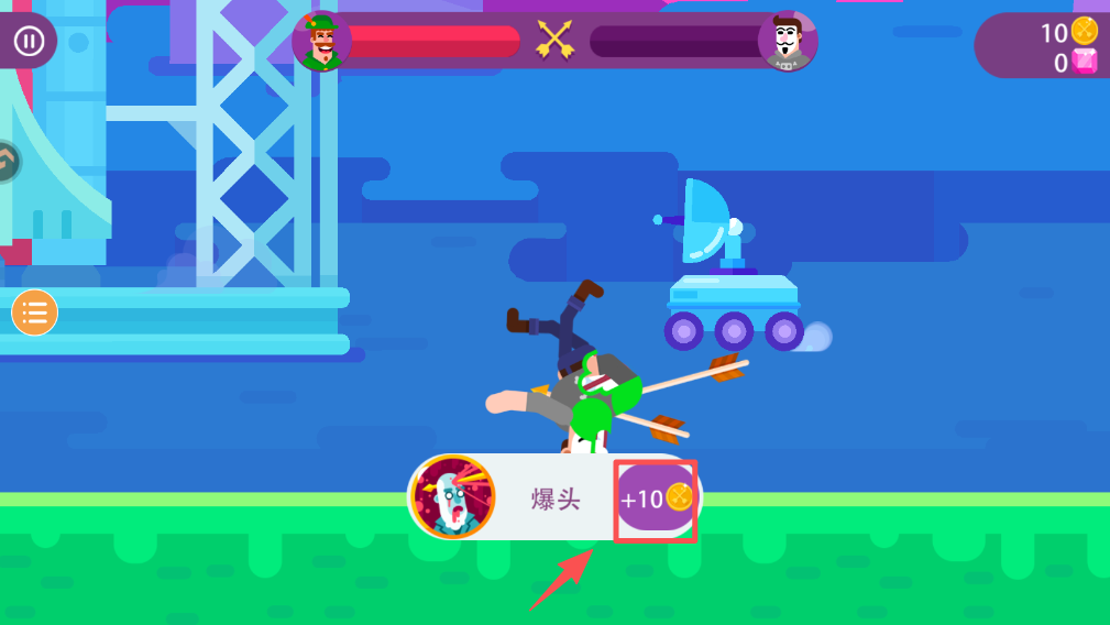 3、获取奖励,击败对手后,点击“+10”按钮,领取金币奖励。