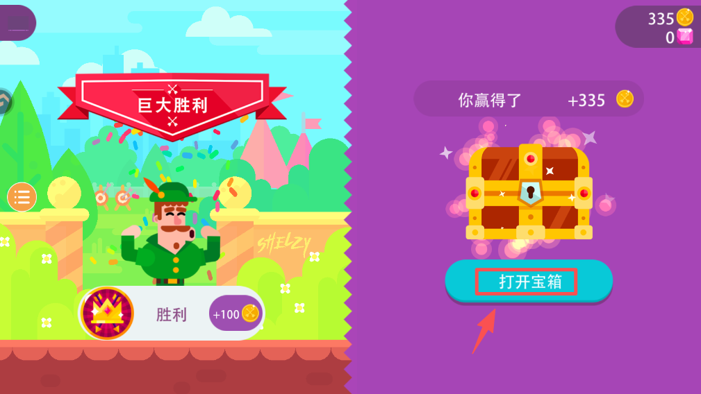 4、庆祝胜利,赢得比赛后,点击“打开宝箱”按钮,获取胜利奖励。