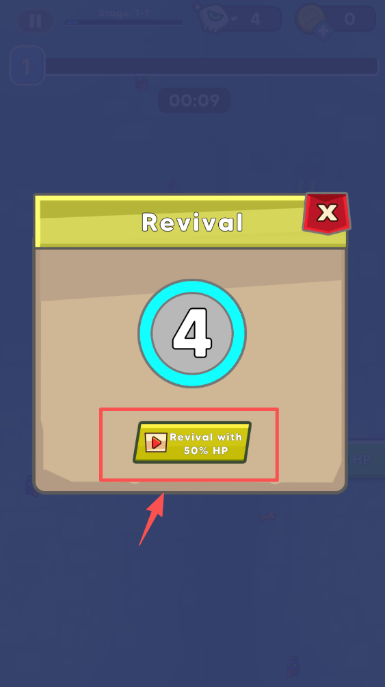 3、使用道具,在战斗中点击道具按钮,使用复活道具恢复生命值。