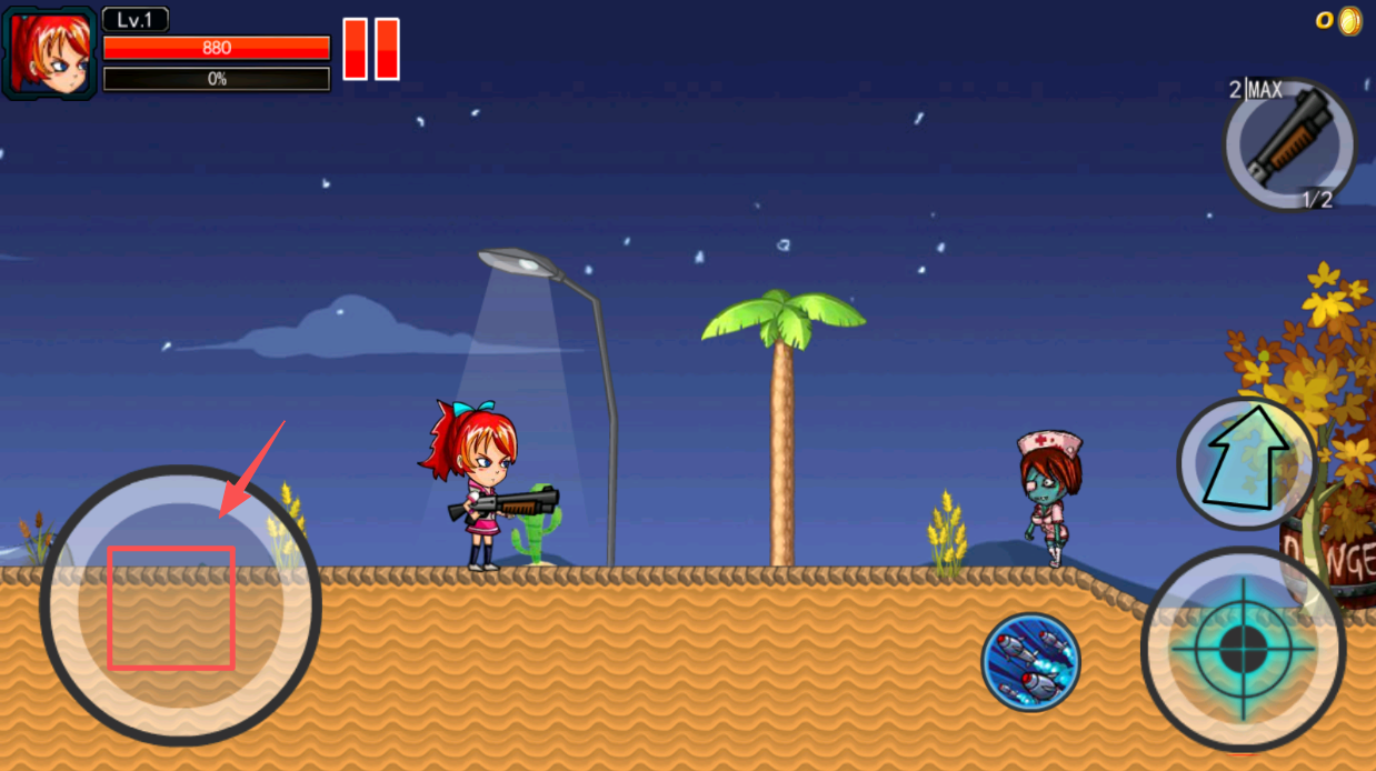 2、控制角色移动,使用左下角的虚拟摇杆控制角色在场景中移动。