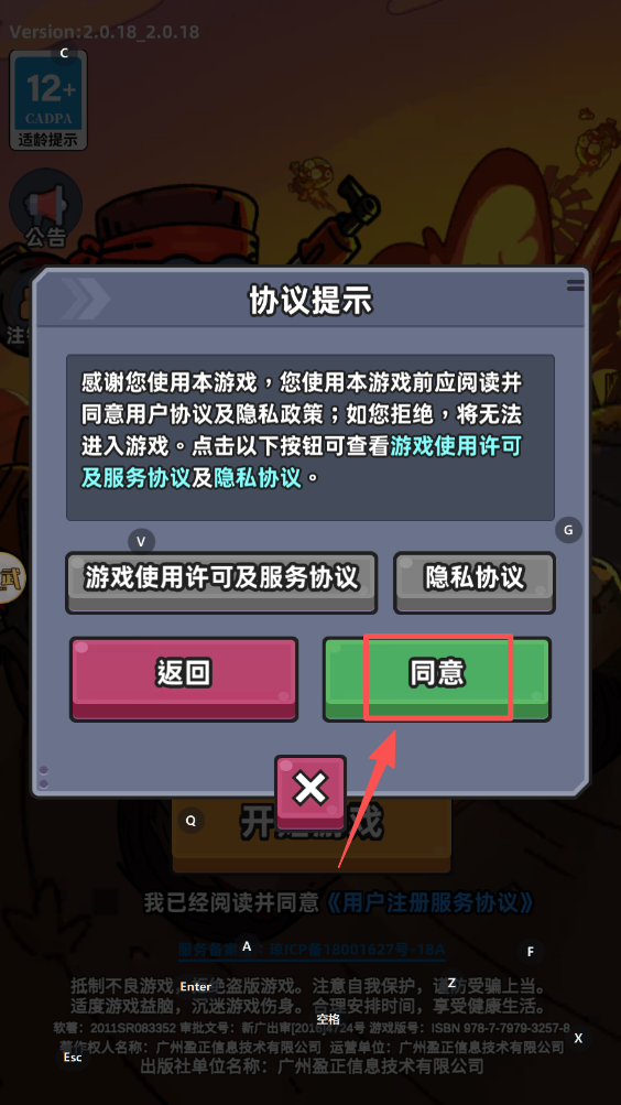 2、同意协议,点击“同意”按钮,接受用户协议和隐私政策。