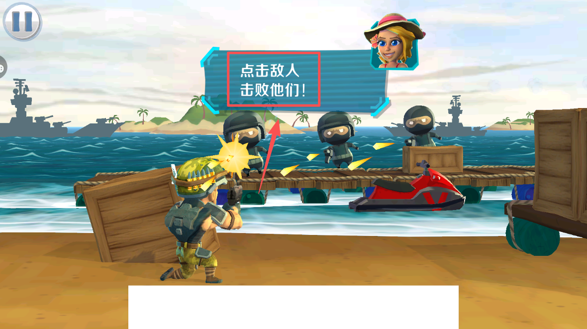 1、点击敌人进行射击。这是攻击敌人的基本操作,点击屏幕即可发射子弹。