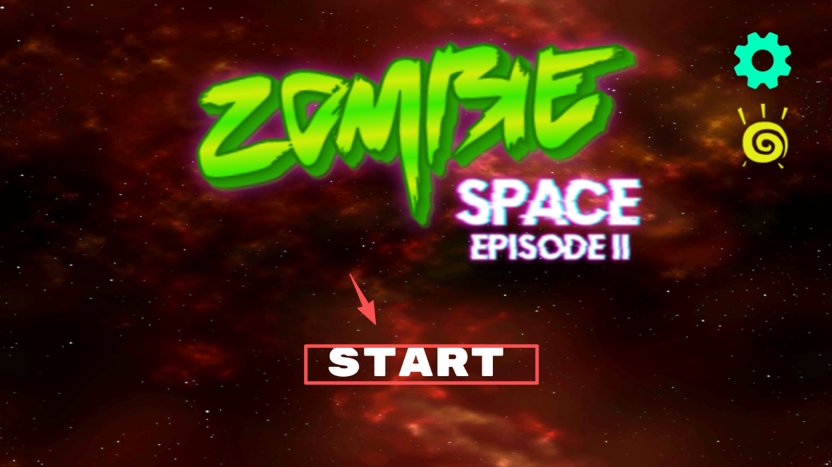 1、点击“START”按钮进入游戏,开始你的太空僵尸射击之旅。