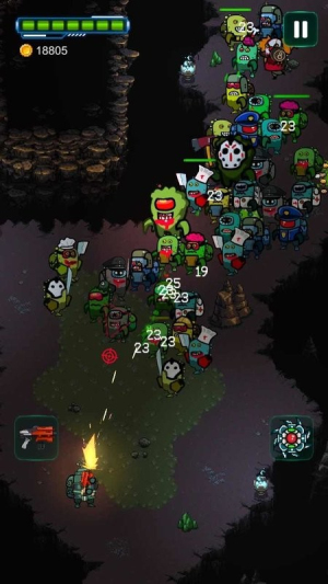 4、游戏开始后,使用虚拟摇杆移动角色,点击射击按钮消灭僵尸。