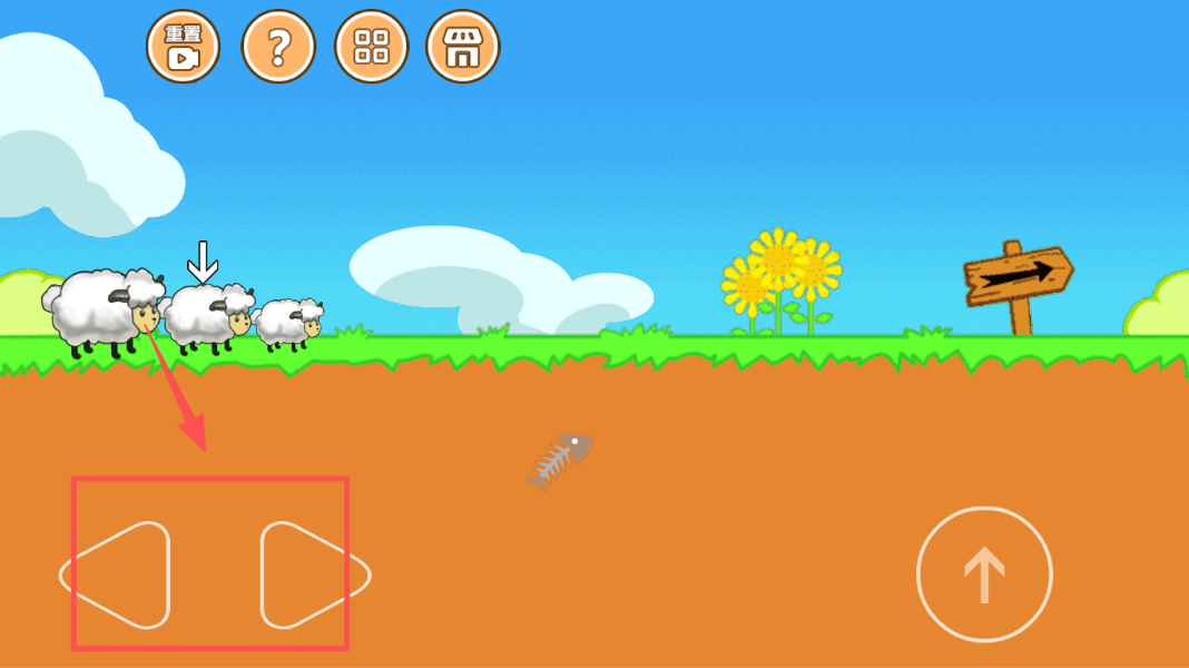 4、继续观察并按照指示点击,引导羊群越到障碍,进行跳跃,完成关卡目标。