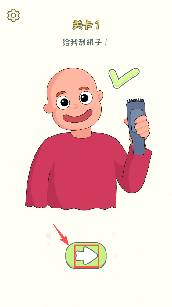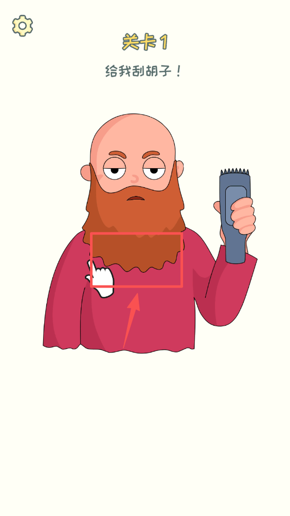 1、在关卡1中,点击并拖动剃须刀到角色的胡子上,帮助他刮干净胡子,完成关卡。