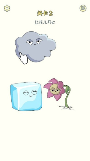 3、在关卡2中,用橡皮擦擦掉乌云,让太阳照在冰块上反射光线,使花朵开心。