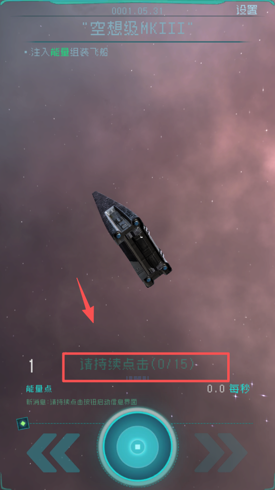 2、请持续点击以注入能量组装飞船。通过持续点击,你可以积累足够的能量来组装你的飞船。