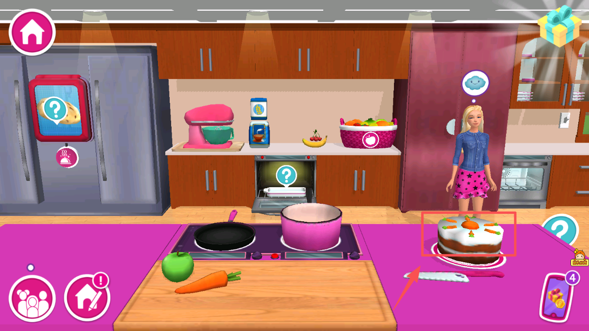 2、在厨房场景中,使用箭头按钮与环境互动,如打开冰箱或操作炉灶。
