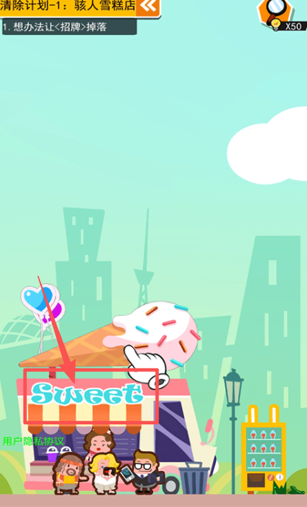 3、在游戏中,找到并点击雪糕店招牌,以触发与游戏情节相关的事件。