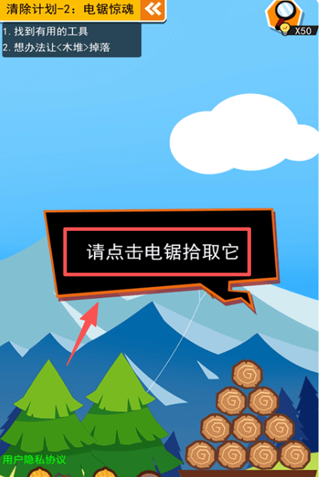 4、在清除计划中,找到电锯并点击以拾取,这是完成关卡目标所需的工具。