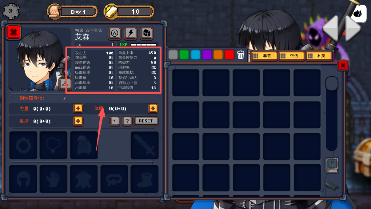 3、查看角色属性并分配点数。合理分配属性点可以增强角色能力,为战斗做好准备。