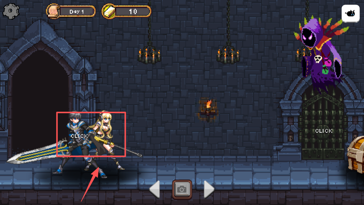 1、点击地牢的门开始游戏。这是进入游戏的第一步,点击后即可开始冒险。