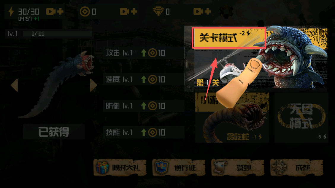 1、点击“关卡模式”按钮,选择游戏模式并开始挑战。