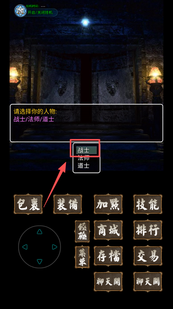 2、点击“战士”按钮,选择你的角色职业,开始你的游戏旅程。
