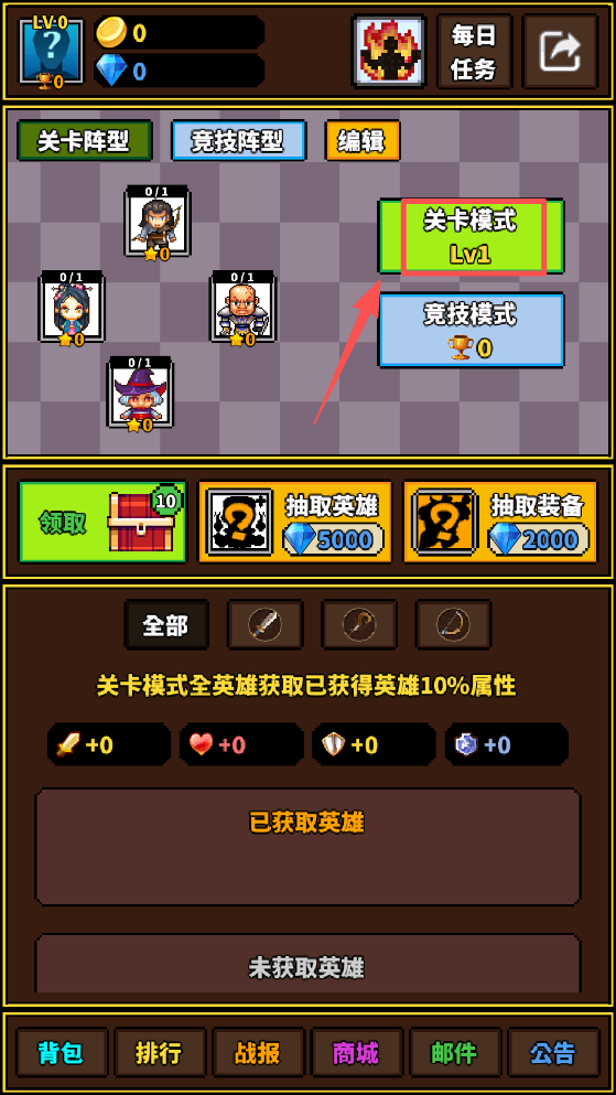 2、点击“关卡模式”按钮,选择游戏模式开始游戏。