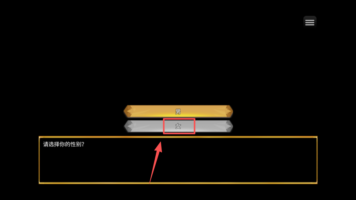 1、选择角色性别,点击“男”或“女”按钮来决定你的角色性别。