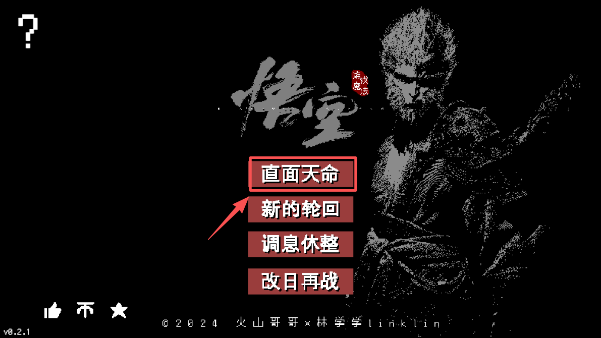 1、选择游戏模式,点击“直面天命”开始新游戏或继续之前的进度。