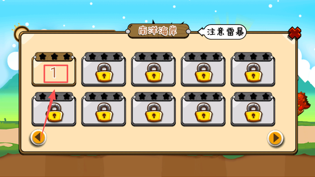 2、选择关卡,点击带锁的关卡图标,选择你想要挑战的关卡。