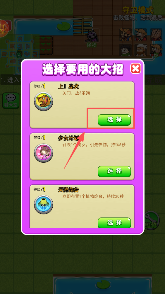 3、然后,在大招选择界面,选择适合的大招技能,如“上!忠犬”等。