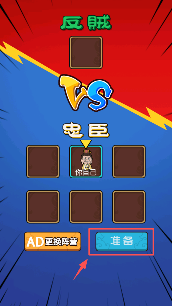 2、点击“准备”按钮,进入战斗准备界面,选择你的阵营。